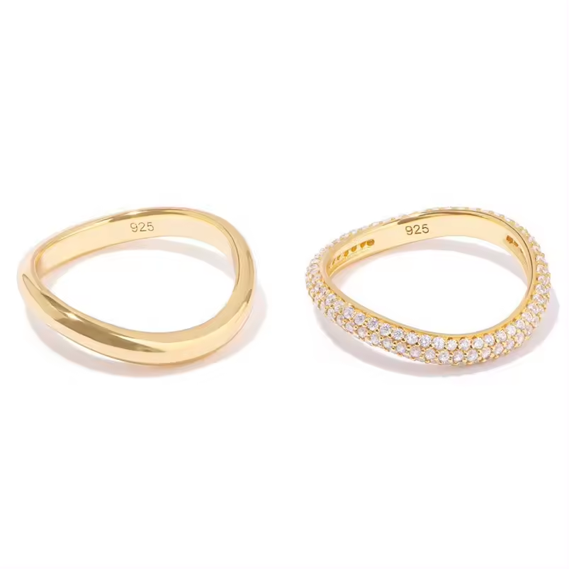 Anillo de bodas de plata de ley 925 con pavé de ondas resistente al agua para mujer.