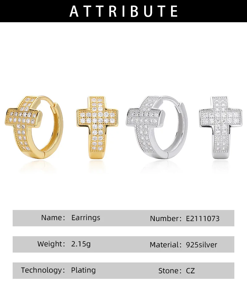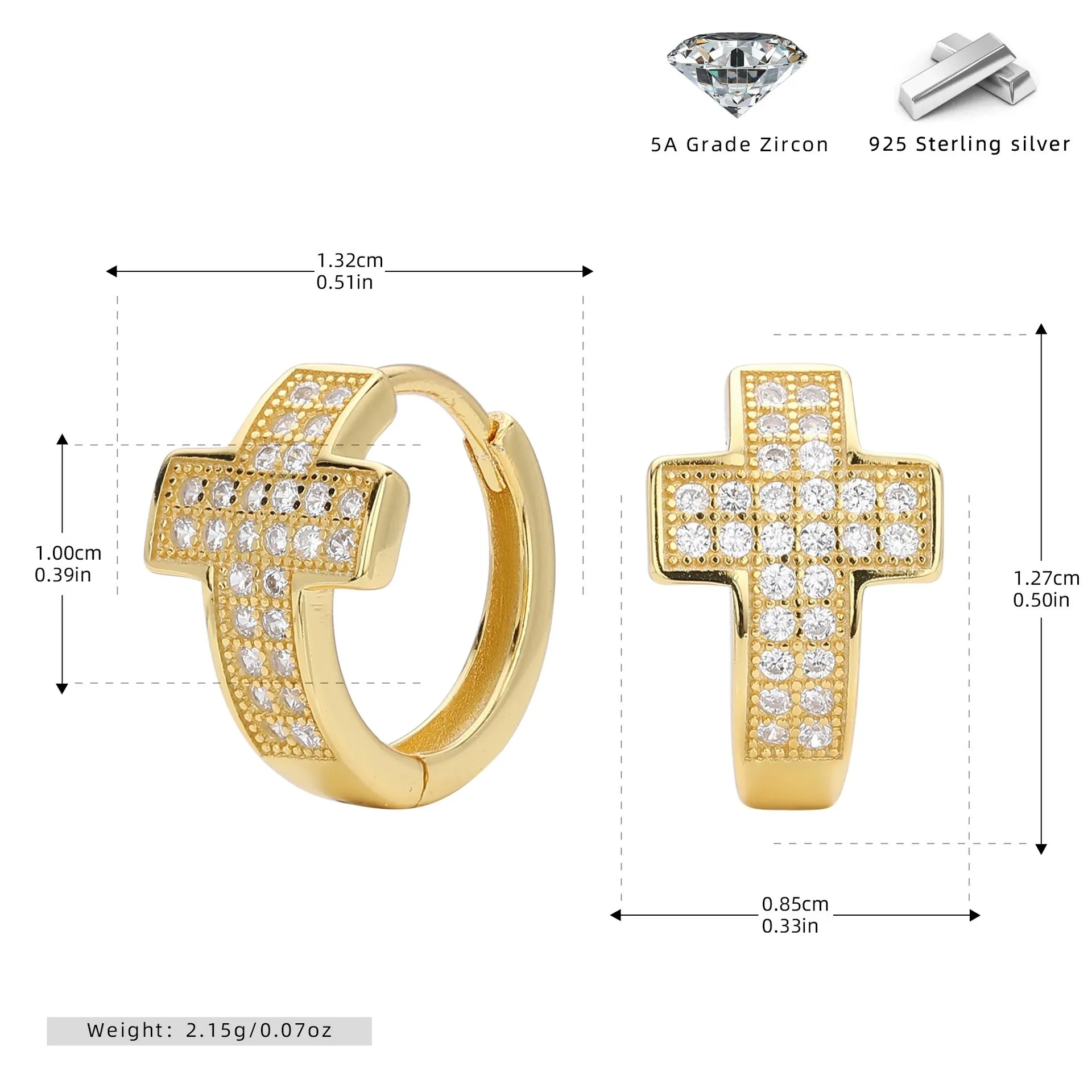 925 Silver Earring for Women 18K Gold Plated Sterling Silver Classic Cross Hoop Earring