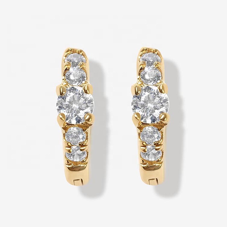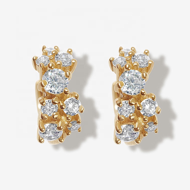 925 Sterling Sliver 14K/18K Gold Plated CZ Diamond Paved Huggie Hoop Earrings